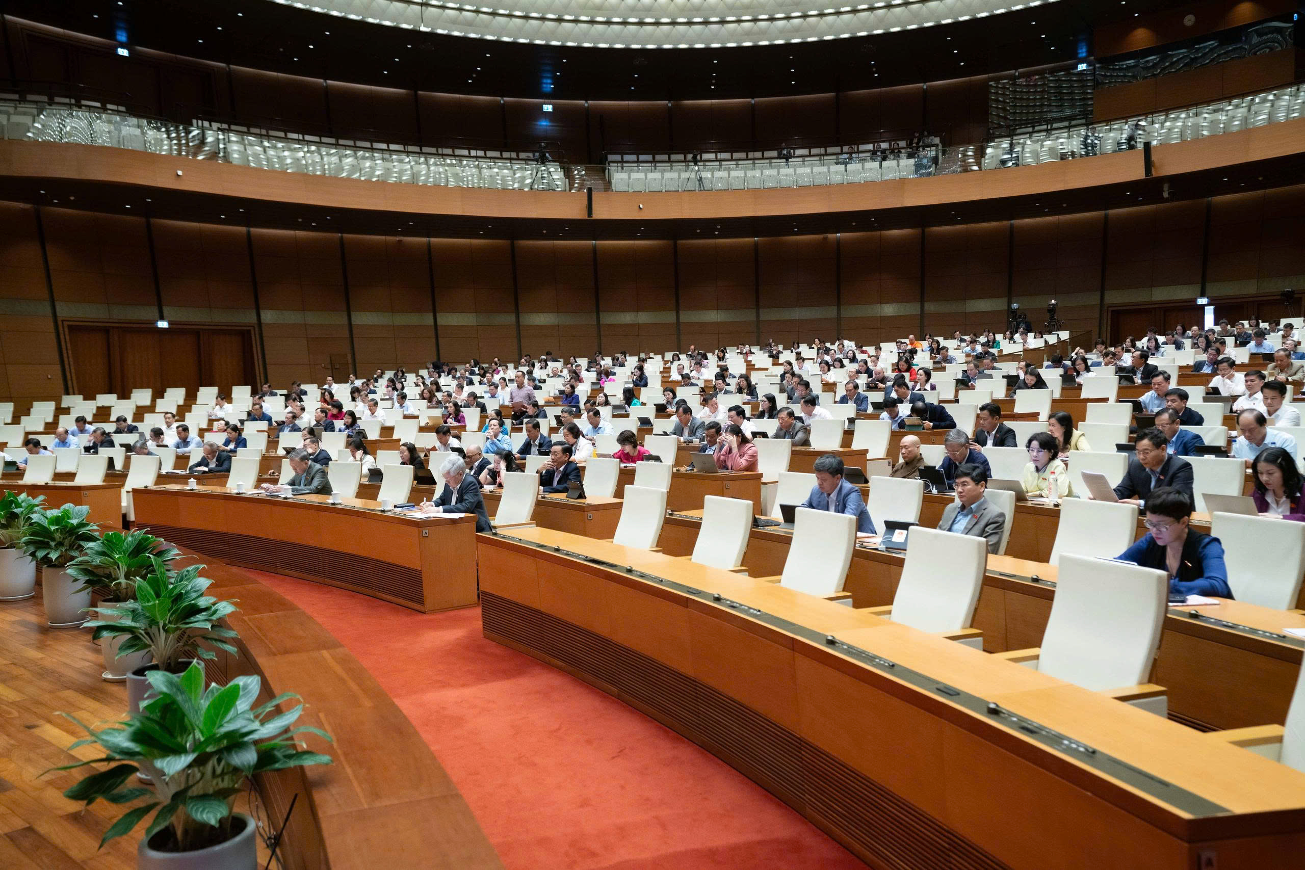 Sáng 27/10, dưới sự điều hành của Phó Chủ tịch Quốc hội Nguyễn Khắc Định, Quốc hội làm việc tại Hội trường, nghe Tờ trình và Báo cáo thẩm tra dự án Luật Thi hành tạm giữ, tạm giam và cấm đi khỏi nơi cư trú; dự Luật Thi hành án hình sự (sửa đổi); dự án Luật sửa đổi,...